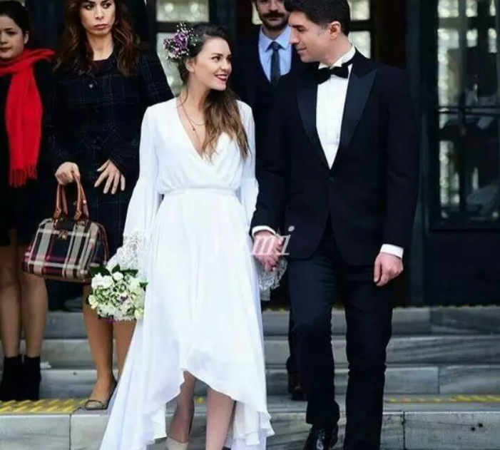 Bohemian Wedding Dresses V Neck Long Sleeves Tea Length Lace Chiffon Beac Country Bridal Gowns