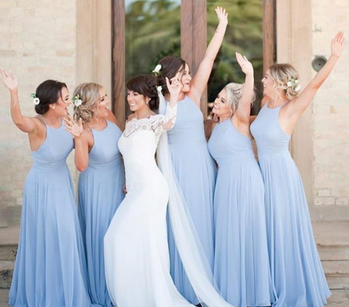 Hot Cheap Bridesmaid Dresses Light Sky Blue Halter Neck Maid Of Honor Dresses