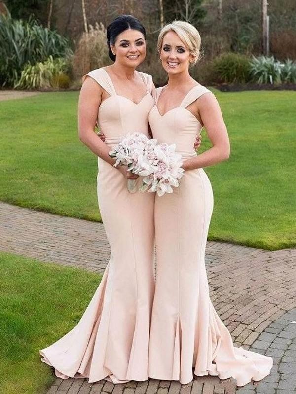 Pink Mermaid Bridesmaid Dresses Long Sexy Spaghetti Straps Elegant Satin Maid of Honor Gowns