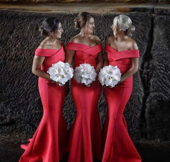 African Arabic Red Mermaid Bridesmaids Dresses Elegant Off Shoulder Long Wedding Guest Dress