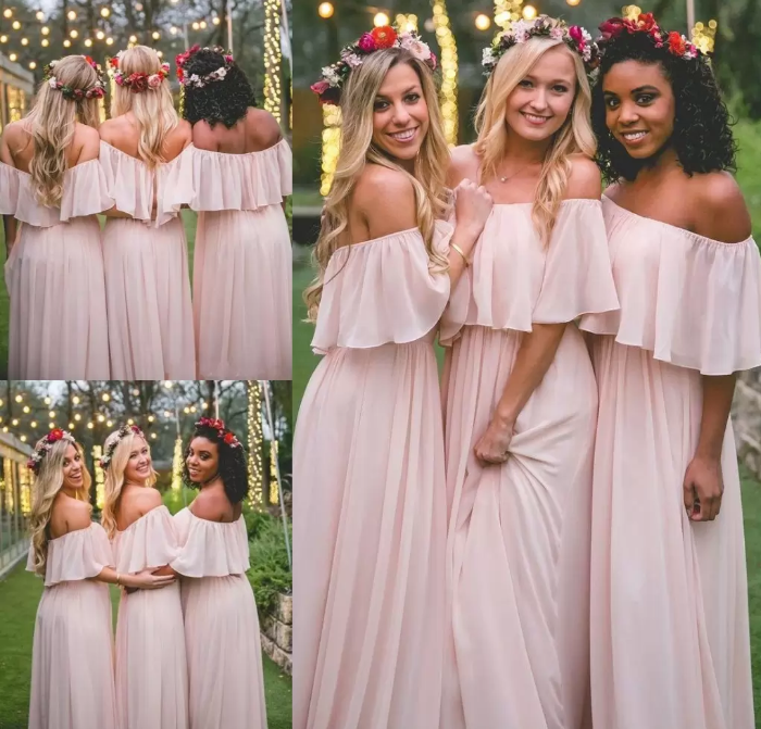 Chiffon Long Bridesmaid Dresses Elegant Pink Off The Shoulder Beach Bohemian Maid of Honor Wedding Party Plus Size Prom Gown