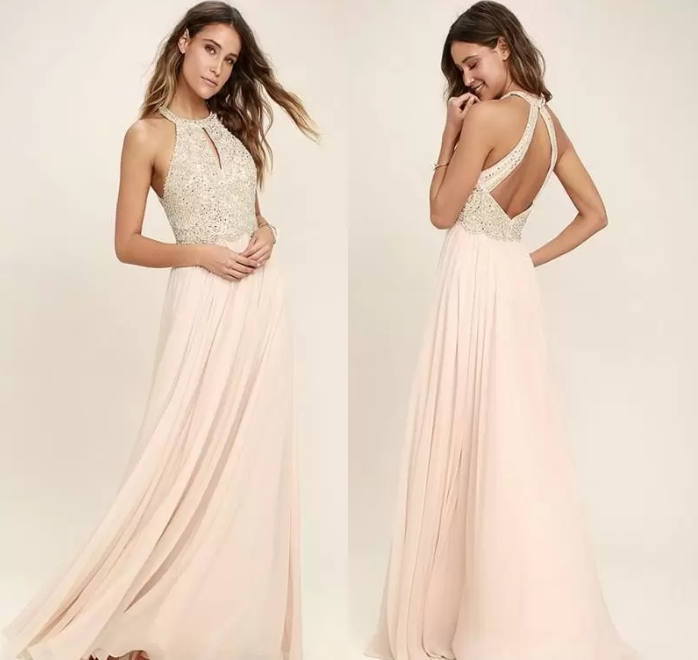 Country Blush Pink Chiffon Bridesmaid Dresses Halter Neck A Line Backless Long Pleats Summer Wedding Guest Party Evening Gowns