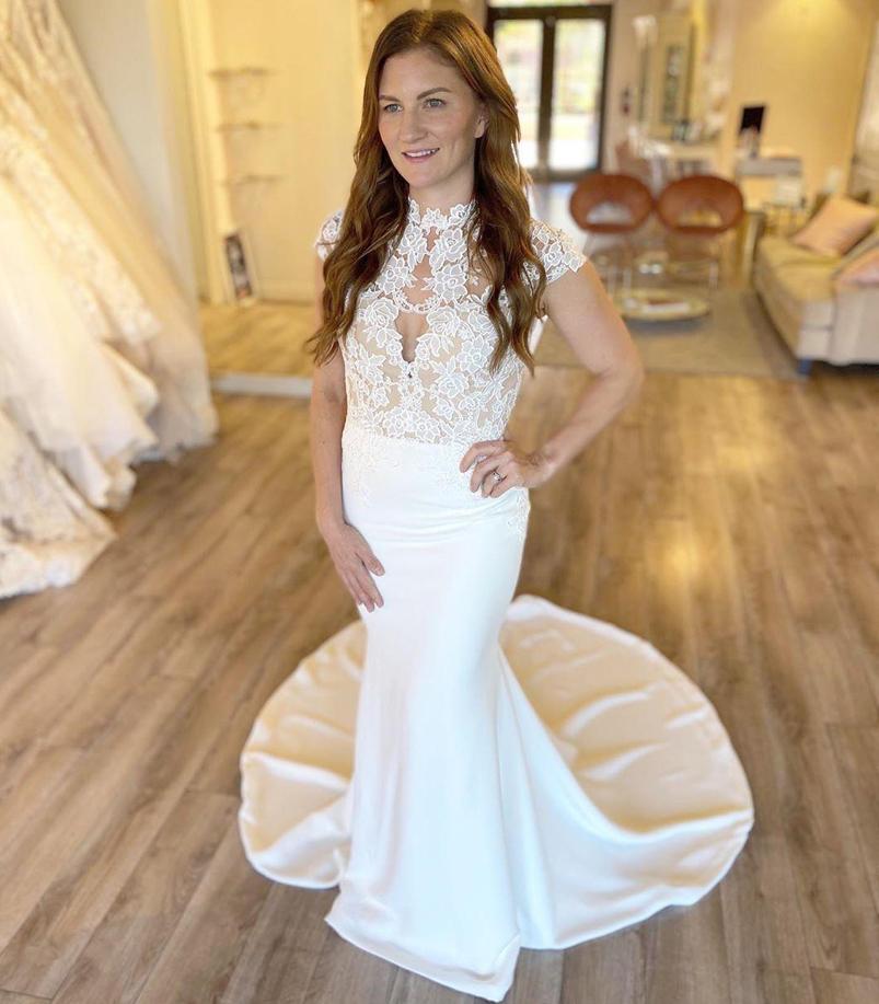 High Neck Lace Mermaid Wedding Dress Off the Shoulder Appliqued Bridal Gowns