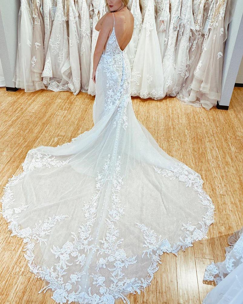 Lace Mermaid Wedding Dress Bridal Gowns Spaghetti Neck Court Train Appliqued Backless Bride Dresses