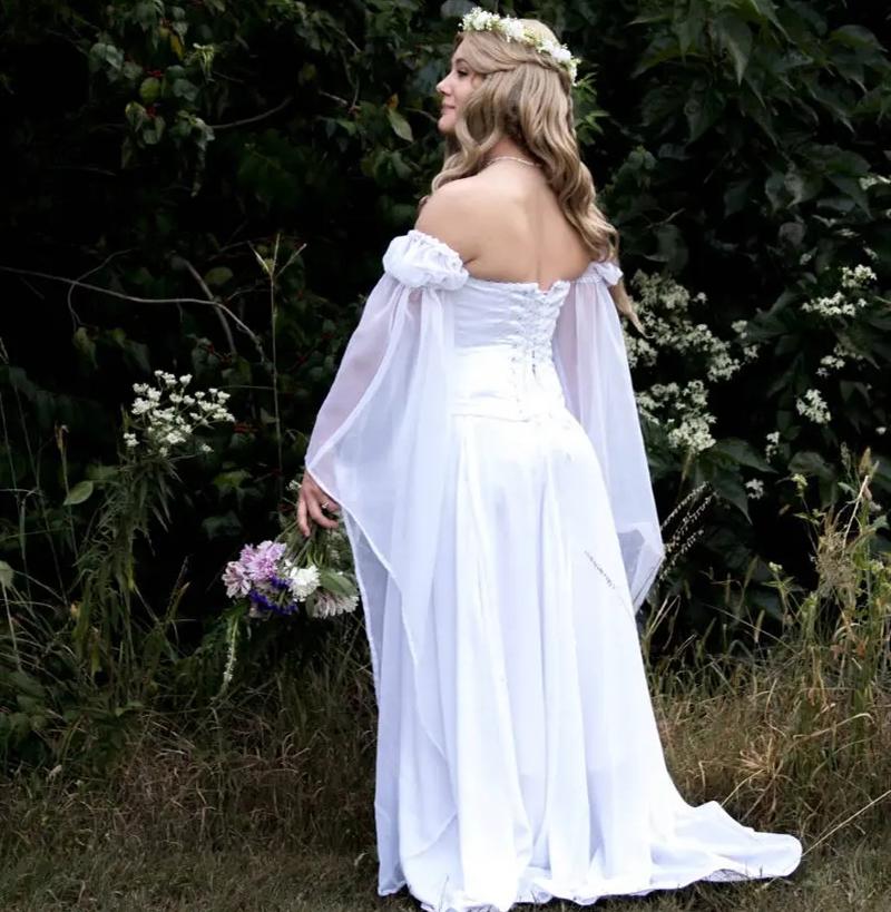 Classic Chiffon Medieval Wedding Dress Gothic Corset Boho Country Wedding Dresses
