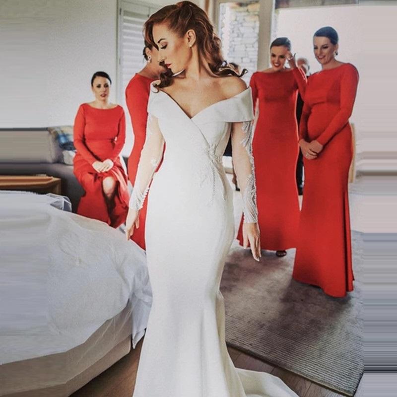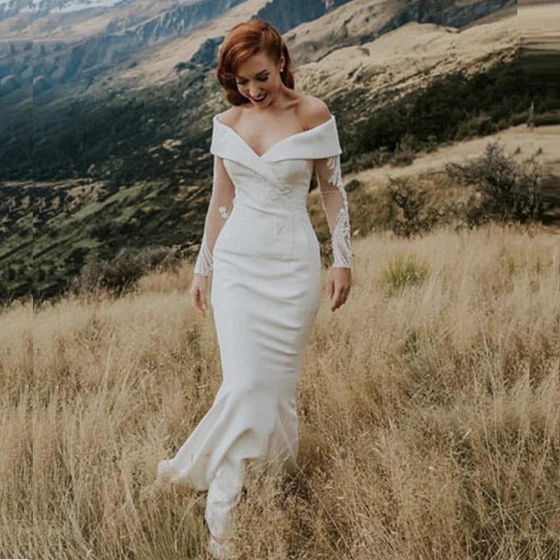Off Shoulder Mermaid Wedding Dresses Long Sleeves Trumpet Floor Length Lace Bridal Gowns