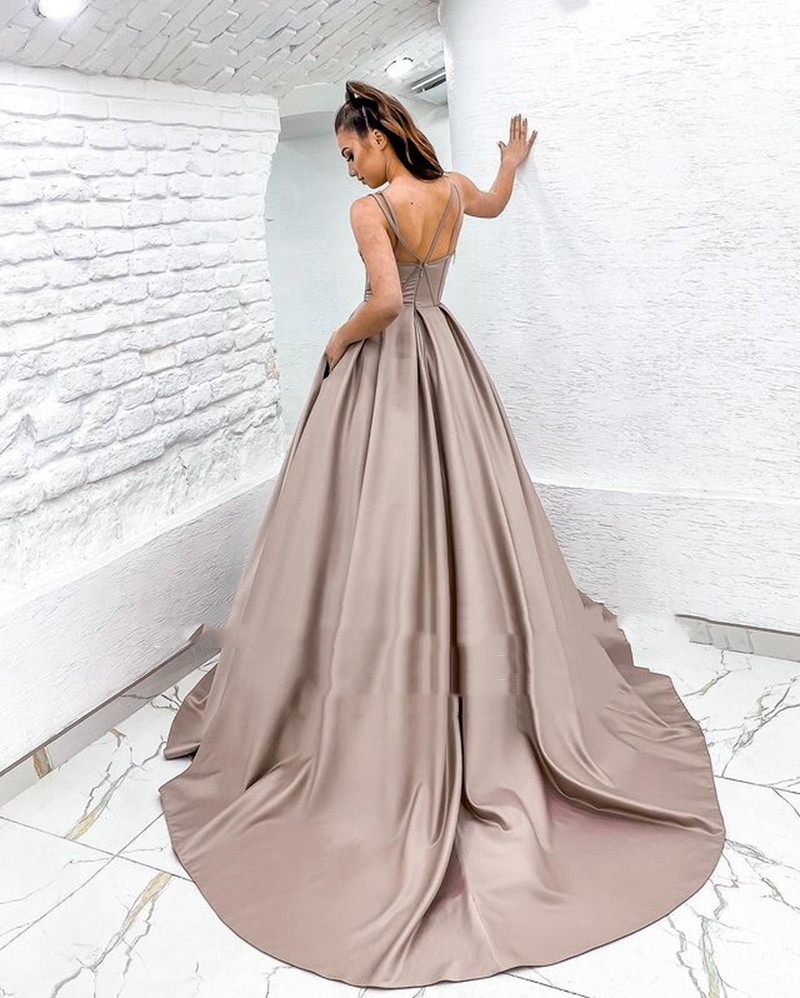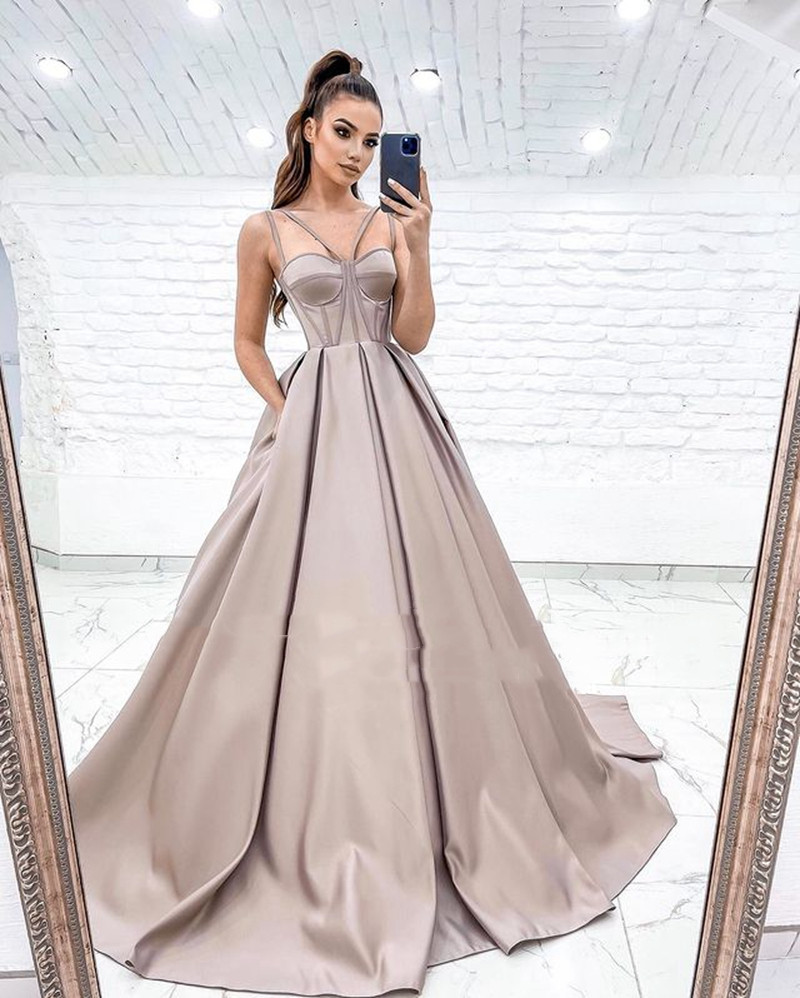 Satin Spaghetti Straps Long A-Line Evening Dress Sleeveles Dubia Formal Party Dress