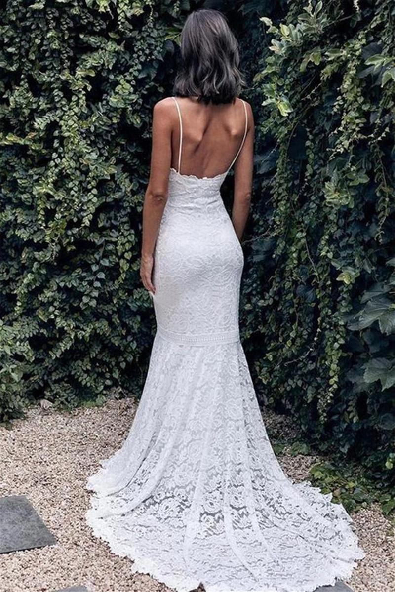 Boho Mermaid Wedding Dress Sexy Spaghetti Strap Lace Bridal Dresses Sxey Backless Appliques Customize Wedding Gowns