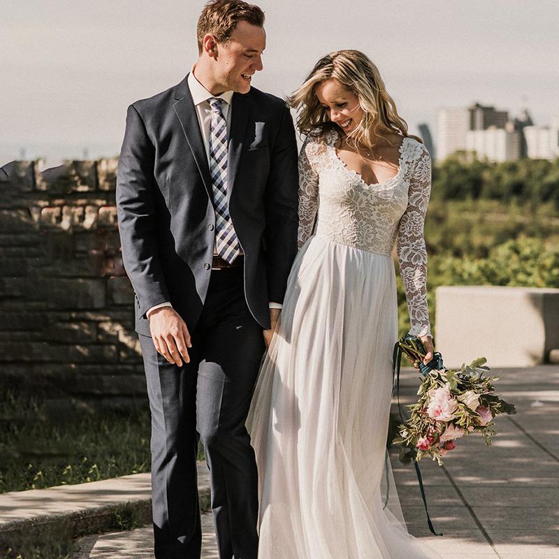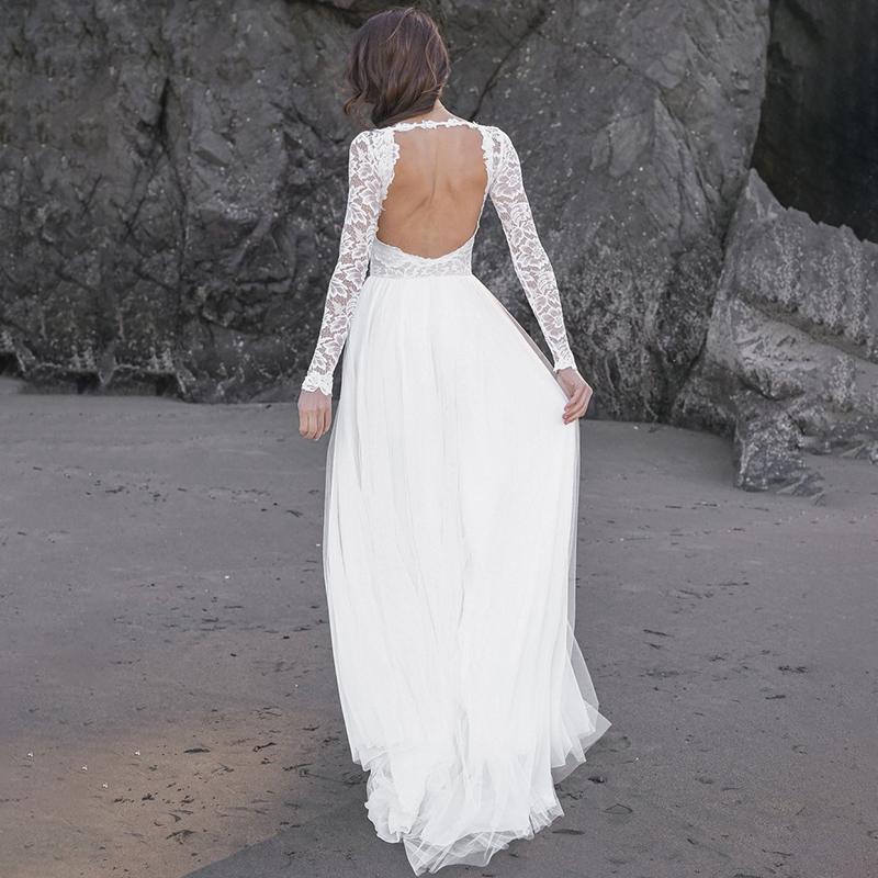 Charming Ivory Lace Wedding Dresses Bridal Gowns A Line Long Sleeves Plunge V Neckline Boho Beach Bride Dress