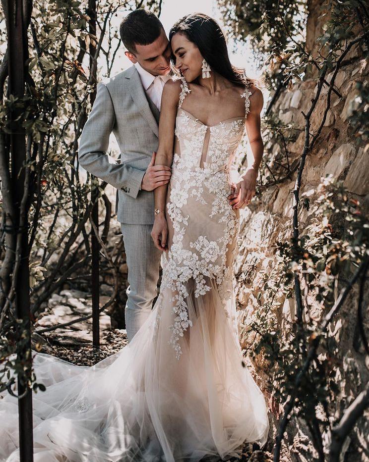 Country Lace Mermaid Wedding Dresses Bridal Gowns Straps Sexy Illusion Appliqued Beads Long Boho Beach Bride Dress