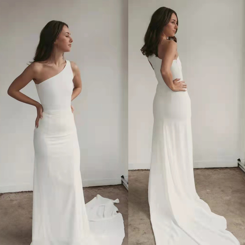 One Shoulder Mermaid Wedding Dresses White Simple Wedding Bridal Gown