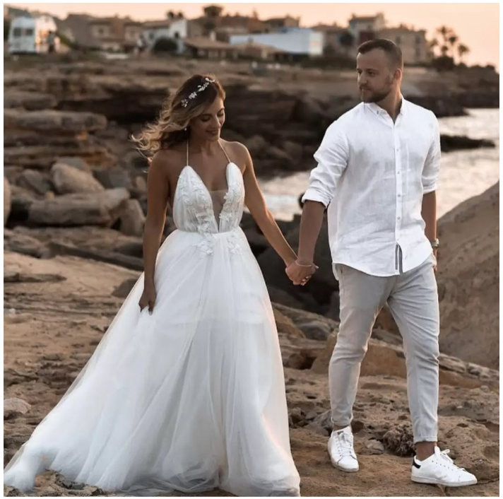 Sexy Halter Backless A Line Wedding Dresses Ivory Tulle Puffy Country Boho Beach Wedding Dress