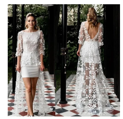 White Tulle Simple Front Short Back Long Wedding Appliques Lace Sexy Backless Small Mermaid Bridal Dress