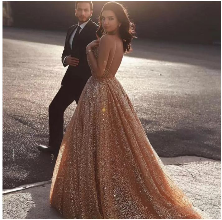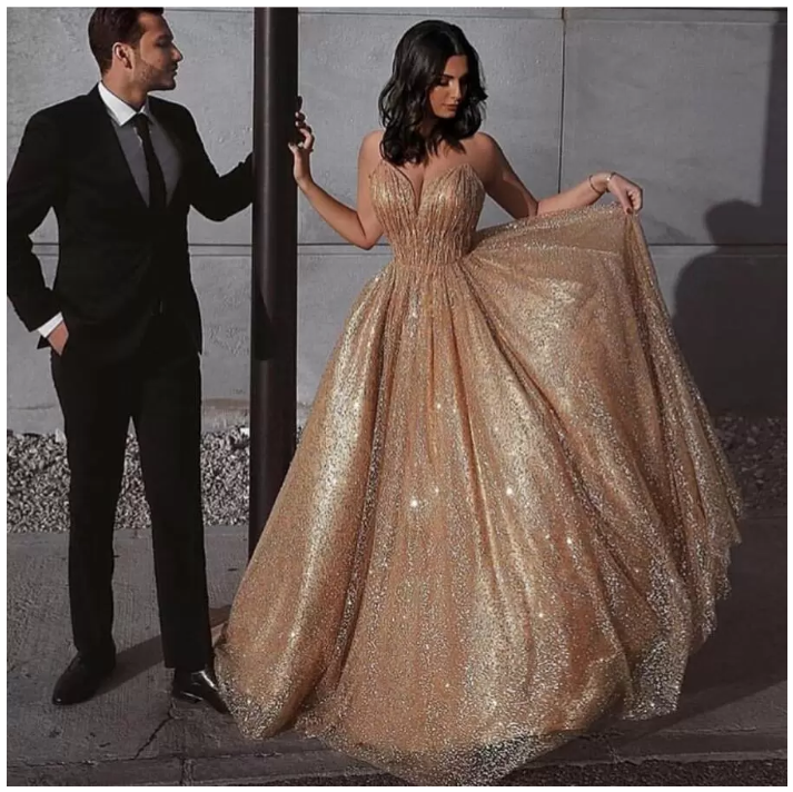 Gold Prom Dresses Luxury Sequined With Spaghetti Straps Middle East Evening Gowns