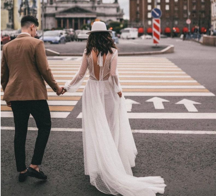Boho Beach Wedding Dresses Long sleeve Bridal Gowns With Cuffs Sexy Open Back Bow A-Line Silhouette Modern And Stylish Bride Dress