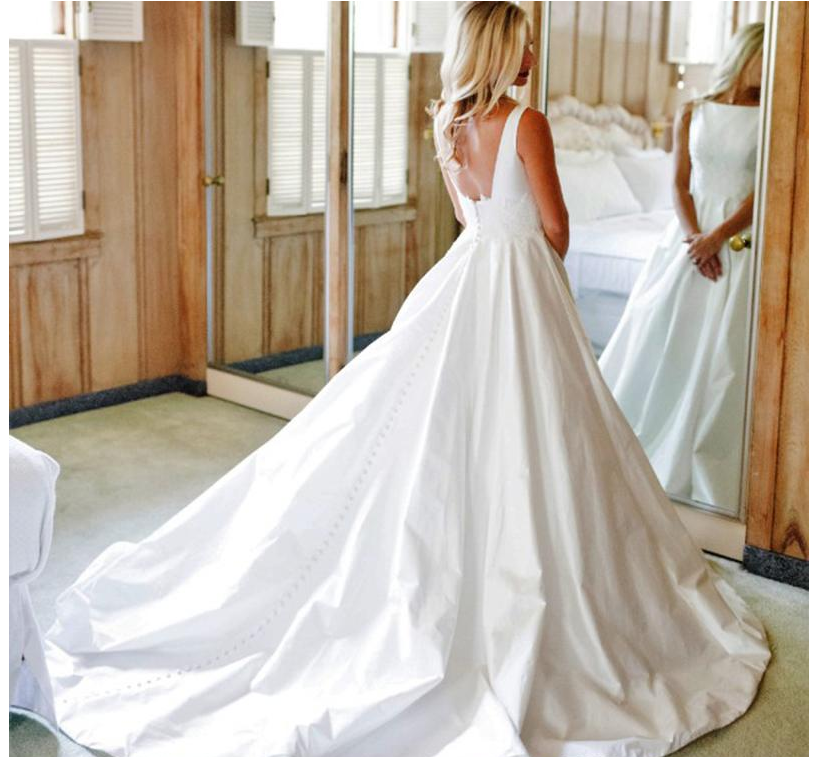 Unique design Princess A line Taffeta Wedding Dresses Court Train country bateau backless buttons simple Wedding Bridal Gowns