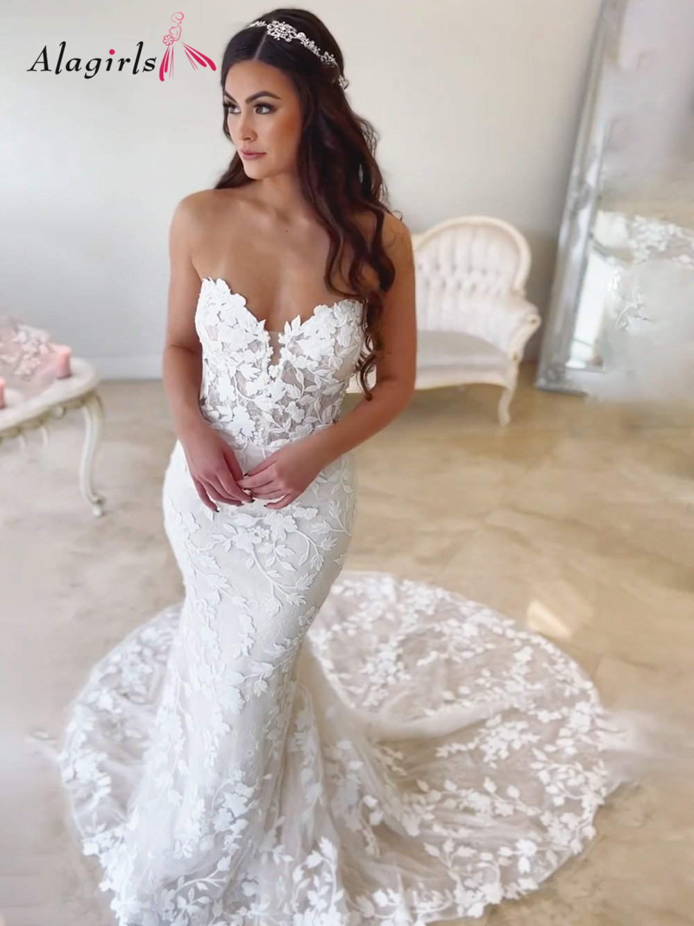 Mermaid Wedding Dress Strapless Wedding Dresses for Bride Applique Beach Wedding Dress