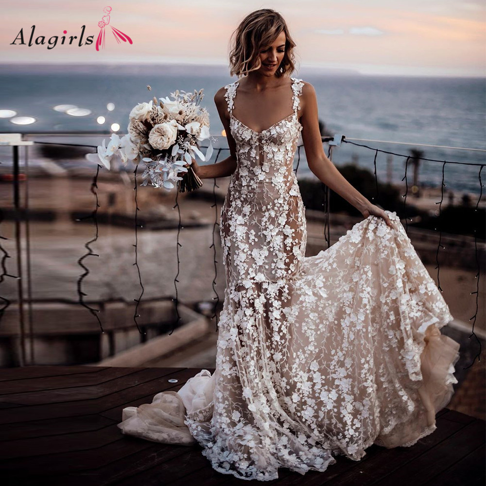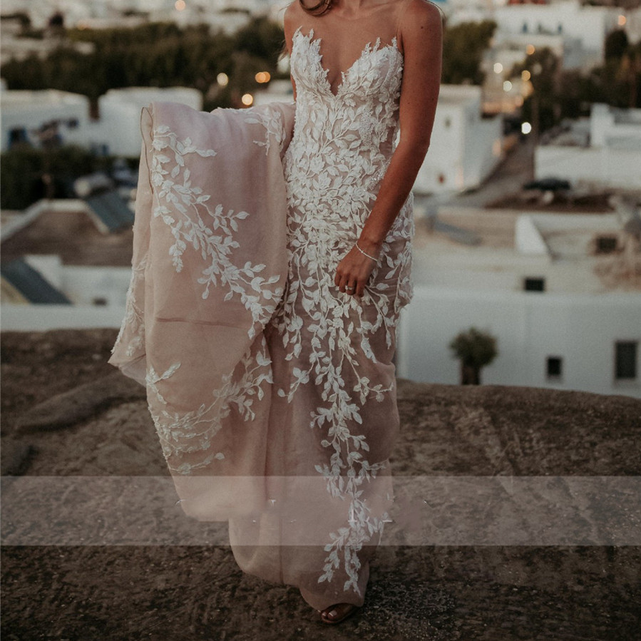 Mermaid Wedding Dress Sexy Lace Applique Wedding Gown Boho Luxury Flowers Bridal Dress Sweetheart Long Bridal Gown