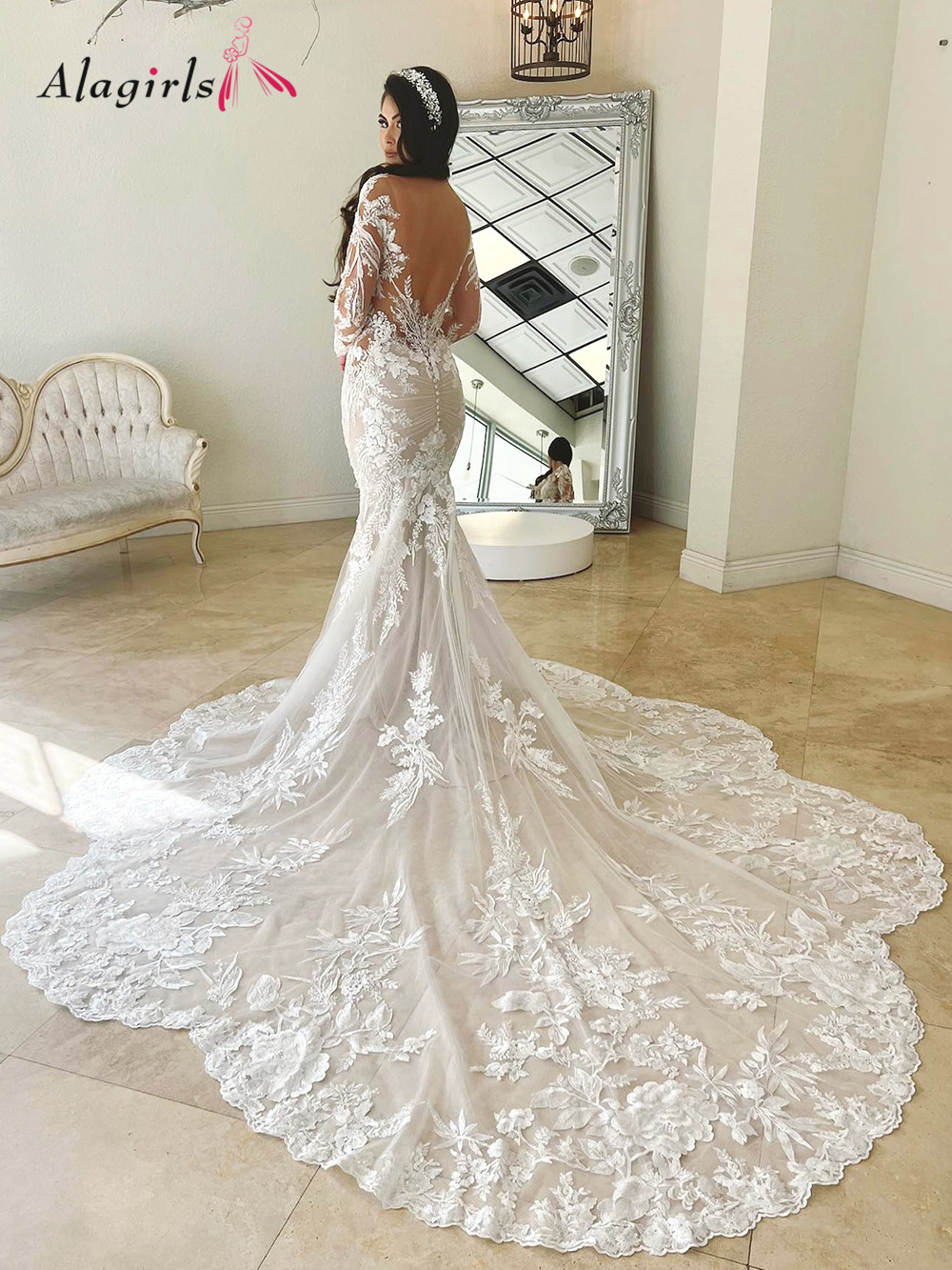 Boho Wedding Dress Mermaid Wedding Dress Full Sleeves Backless Bridal Dress Wedding Dress