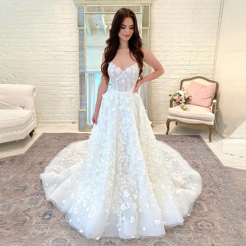 Spaghetti A Line Lace Wedding Dresses with Applqiues Court Train Lace-up Back Boho Plus Size Bridal Gowns