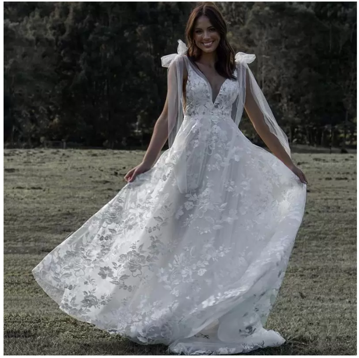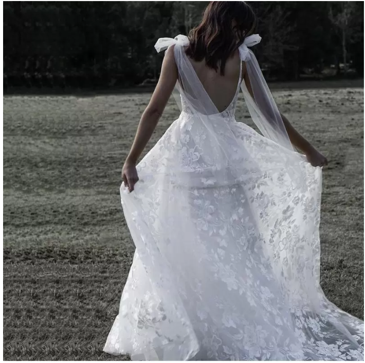 Vintage Full Lace Country Wedding Dress Adjustable Strap Bridal Gowns