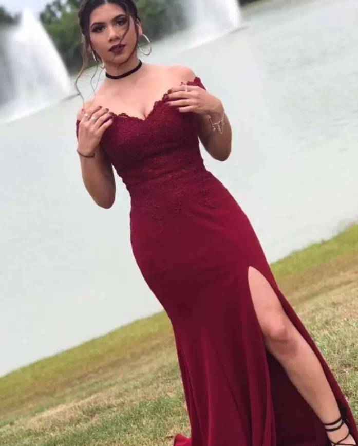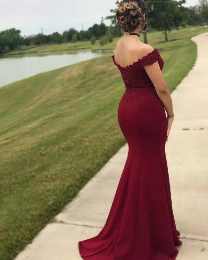 Mermaid Off The Shoulder Lace Prom Dresses Sleeveless Sweep Train Side Split Bridesmaid Dress
