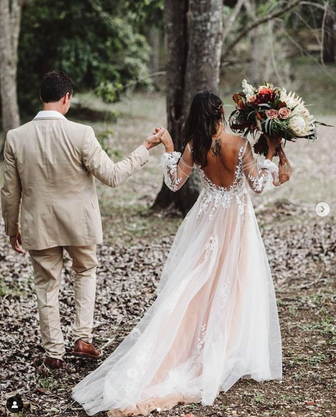 Bohemian Deep V Lace Appliqué Country Garden Wedding Dress