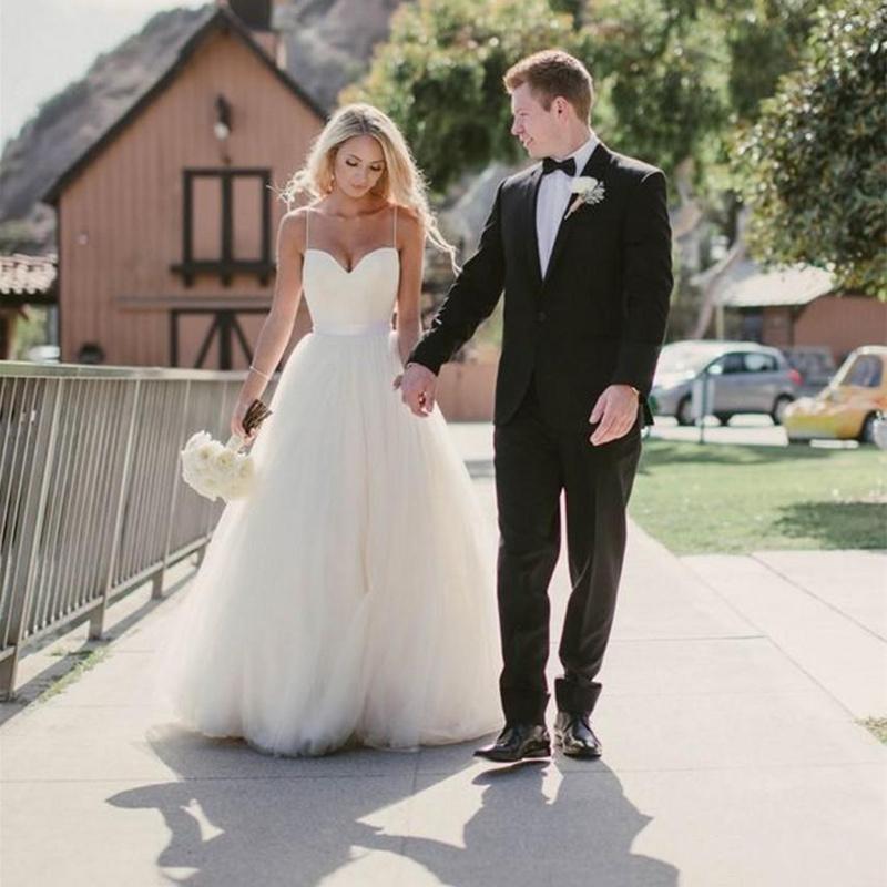 Simple Beach Wedding Dresses Spaghetti Backless Bohemian Bridal Gowns
