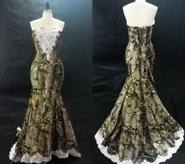 Classic Camouflage Wedding Dresses gown Mermaid Sweetheart With White Lace Applique Sequins Corset Back Real Bridal Gowns