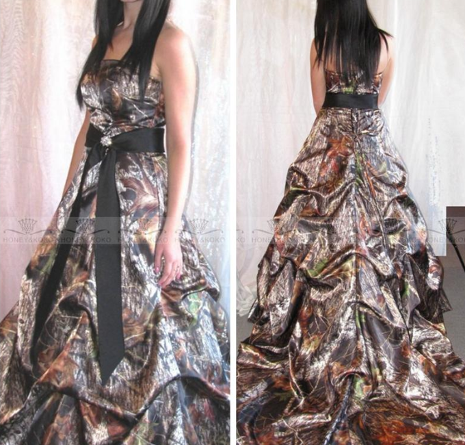 Strapless Real Tree Brown Camo Wedding Dresses Satin Bridal Gowns Zipper Back Custom Online Formal Camouflage Country Bridal Gown