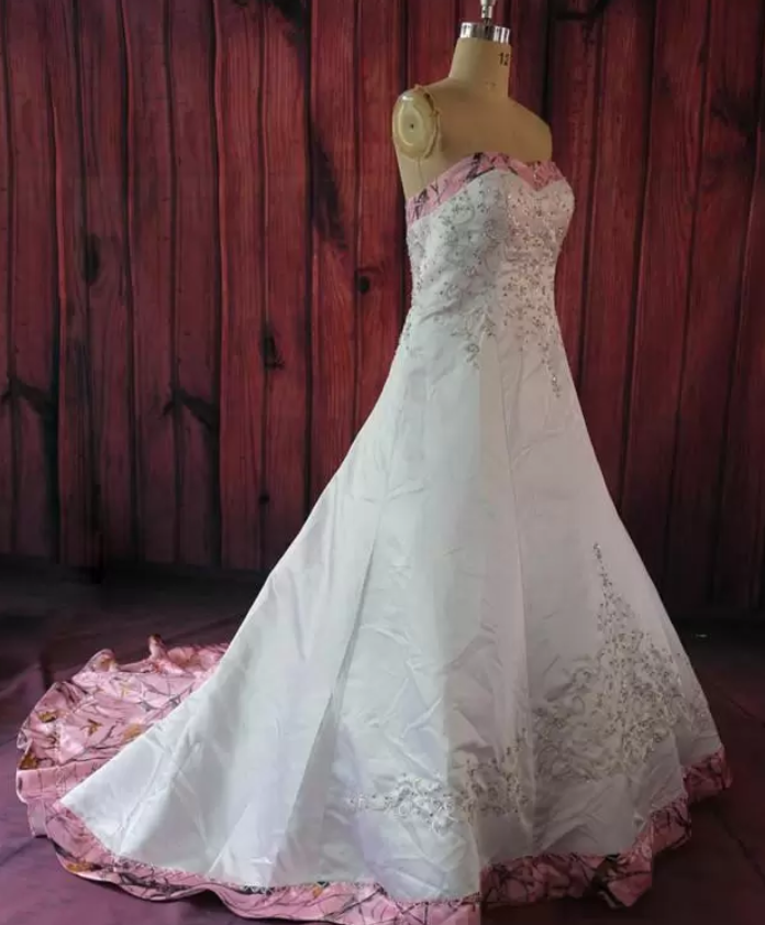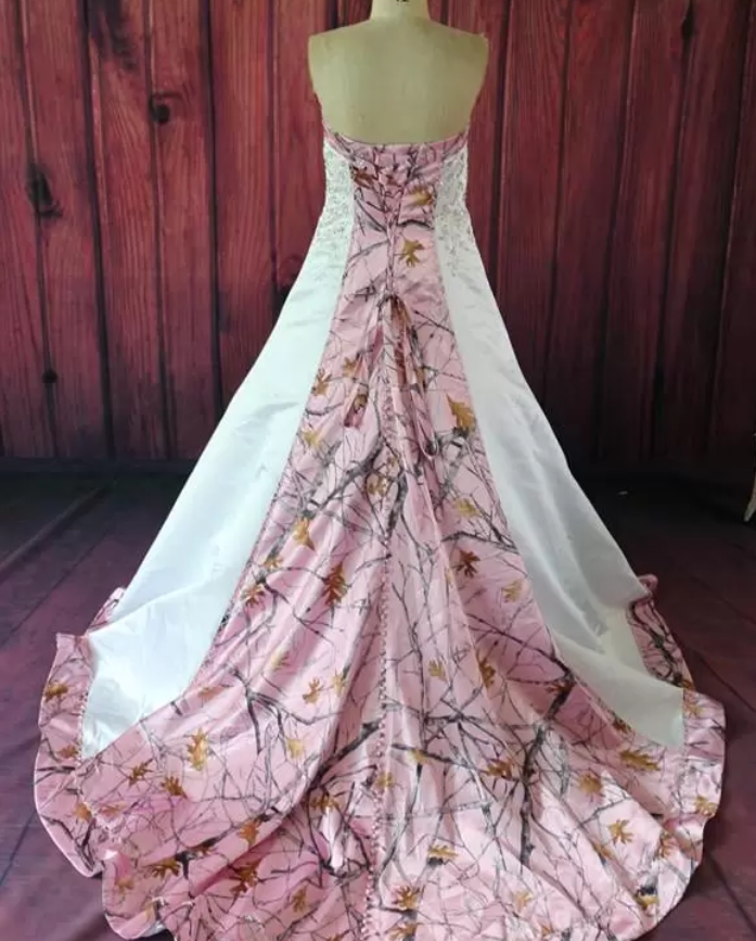 Vintage Pink Camo Sweetheart Embroidery Beading Wedding Dress Custom Lace Up Back Formal Bridal Gowns Camouflage With Veil Garden