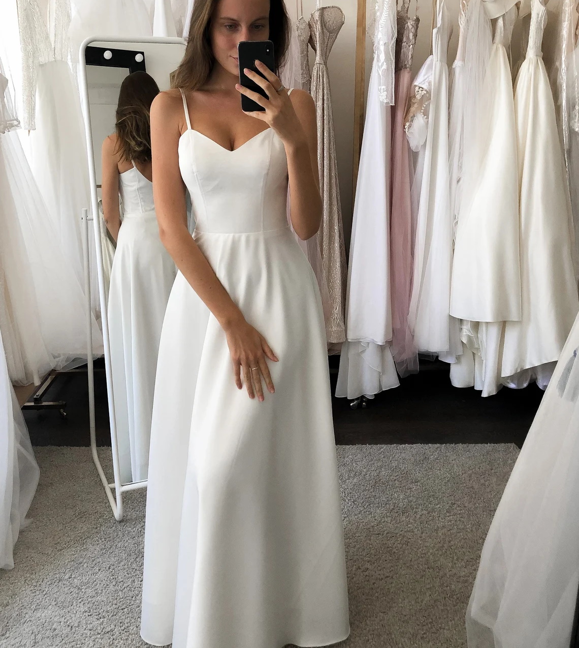 Spaghetti Straps Bohemian Soft Satin A-Line Elegant Open Back V-Neck Wedding Dress