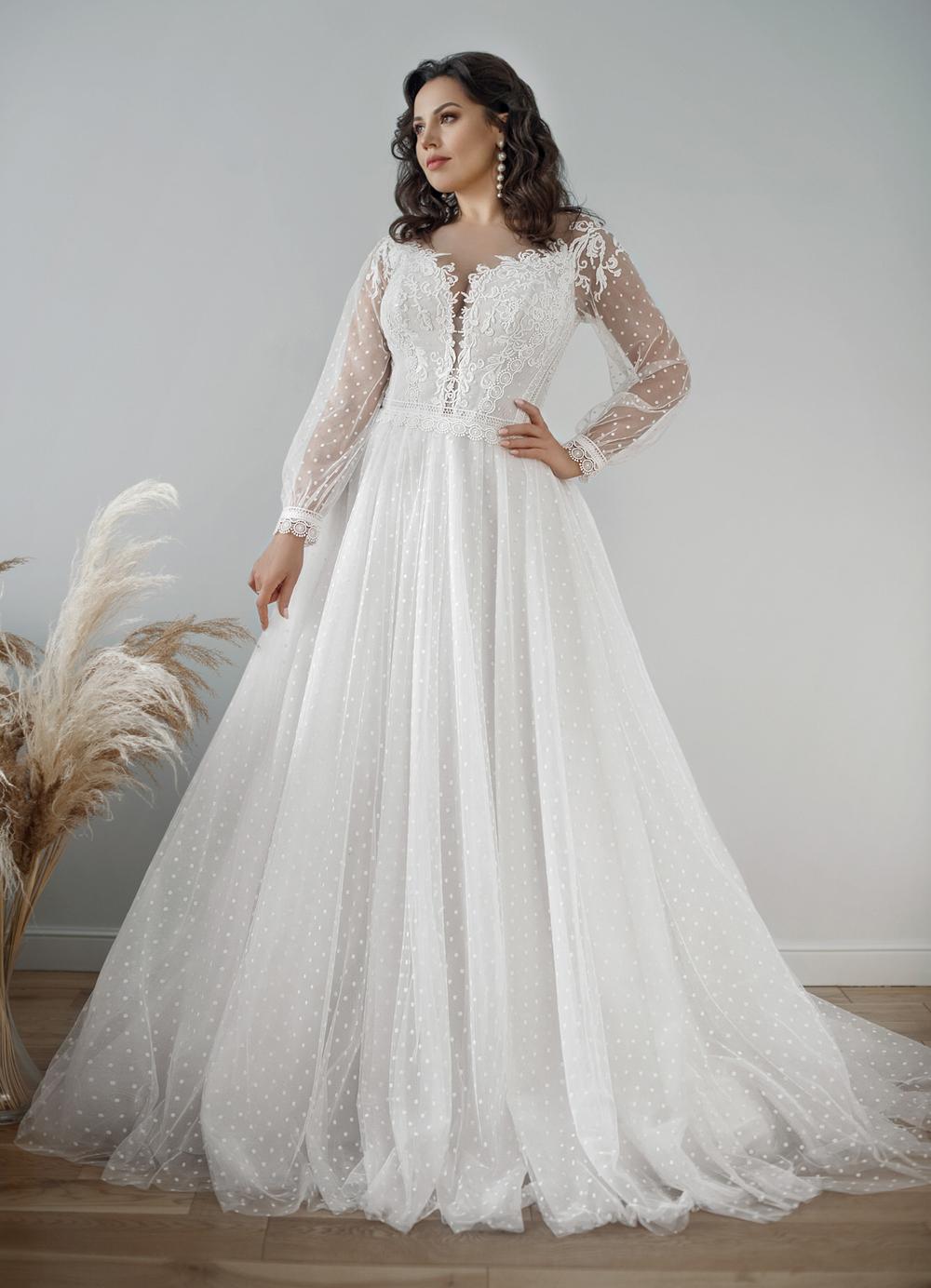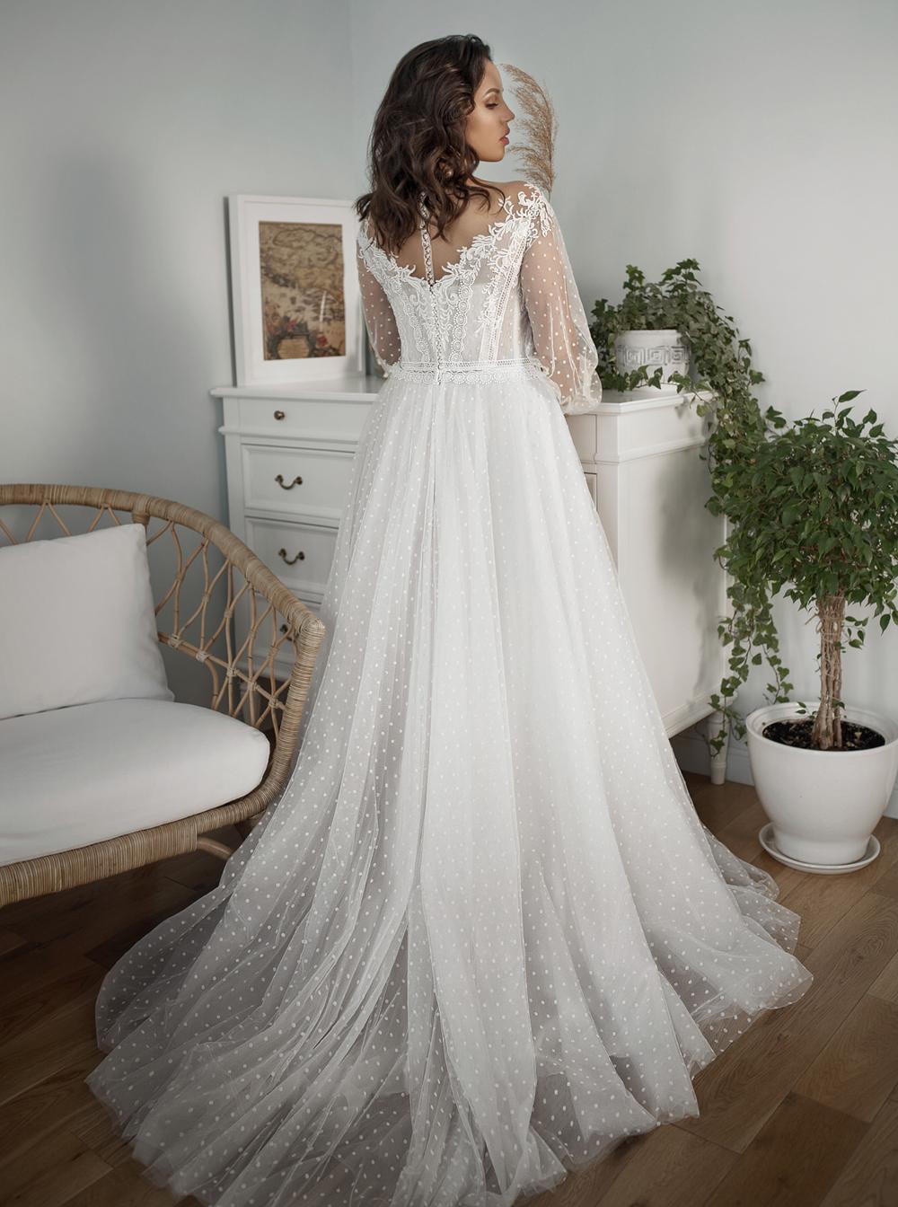 Country A-Line Wedding Dresses For Bride Long Sleeve Bridal Gowns Dots Tulle Lace Appliques Ivory Boho Beach Dress