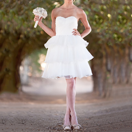 Sweet Short White Tiered Wedding Dress, Elegant Sweetheart Mini Ruffles Bridal Gown