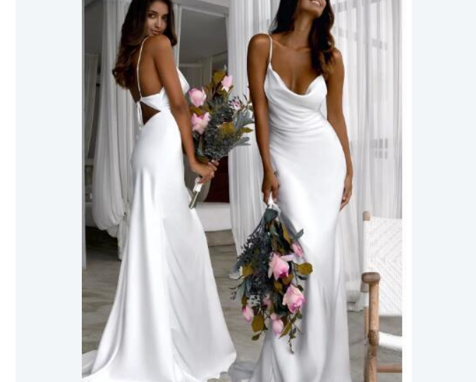 White Spaghetti Straps Satin Mermaid Long Bride Dress