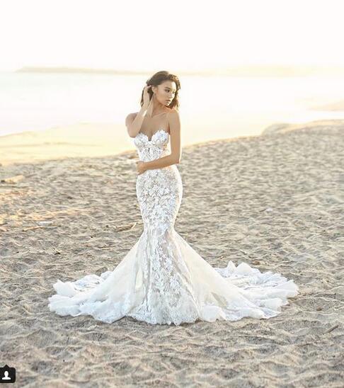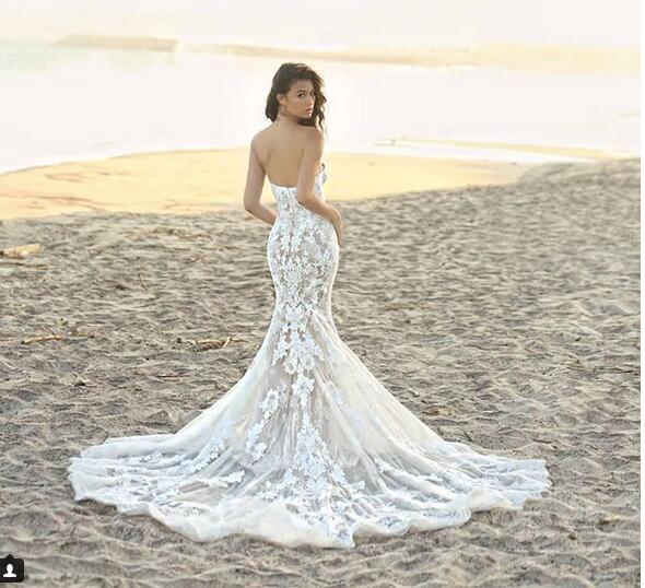 Stunning Mermaid Wedding Dresses Sweetheart Tulle Lace Appliques Bridal Gown