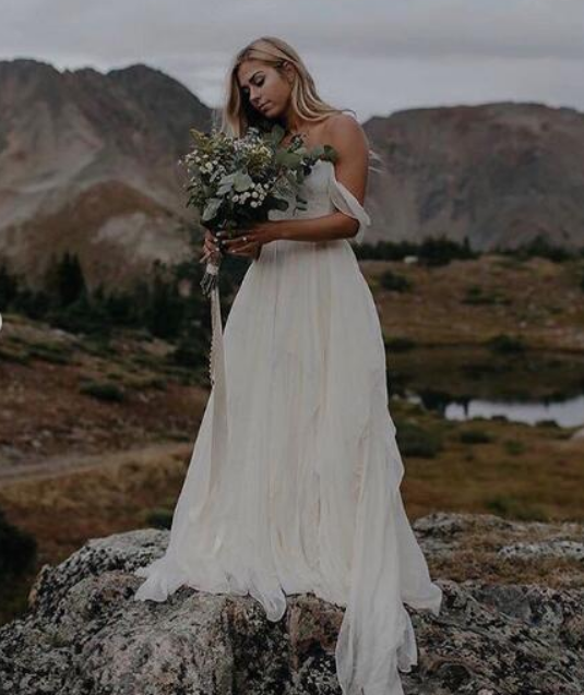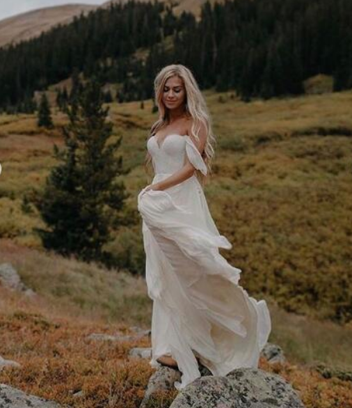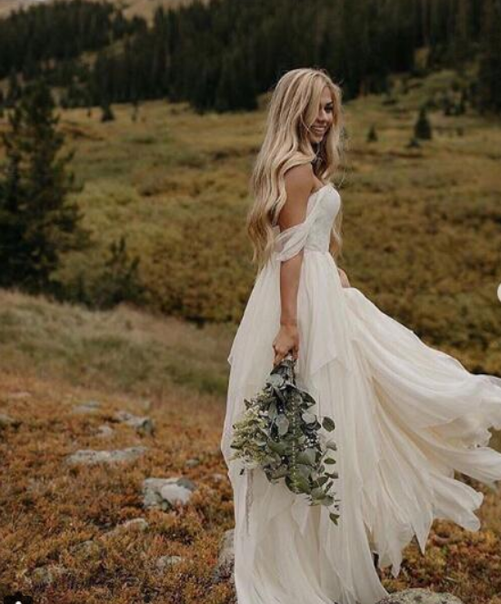Beach Bohemian Wedding Dresses A Line Tulle Off the Shoulder Bridal Gowns