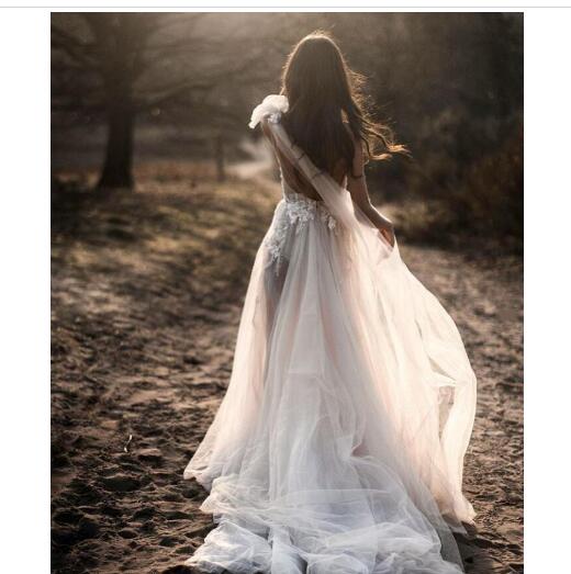 One Shoulder Tulle Beach A Line Bohemian Wedding Dress