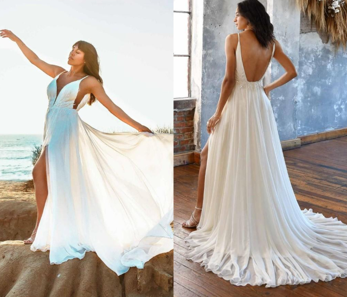 Beach Wedding Dress Cool Bohemian Hippie Style Pleats Chiffon A Line Brial Gowns