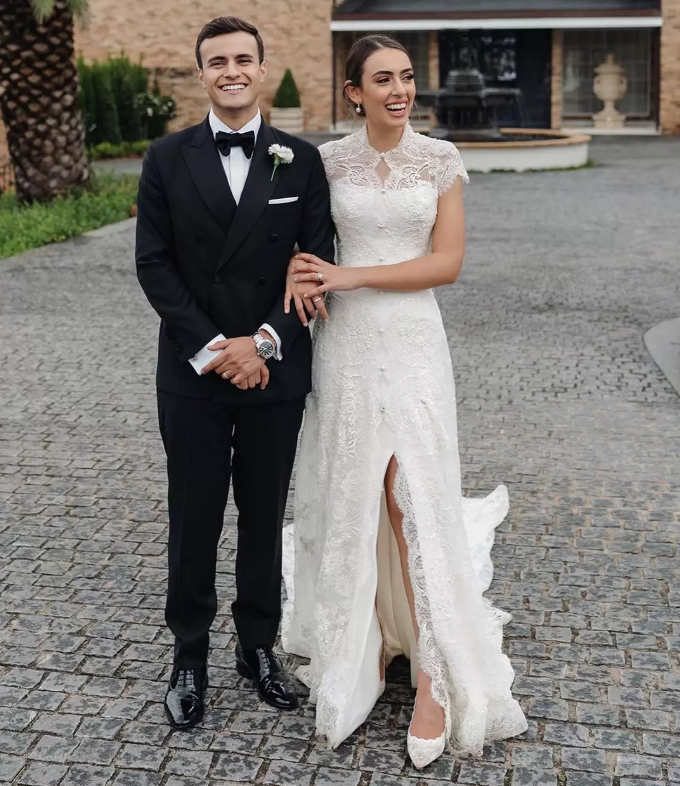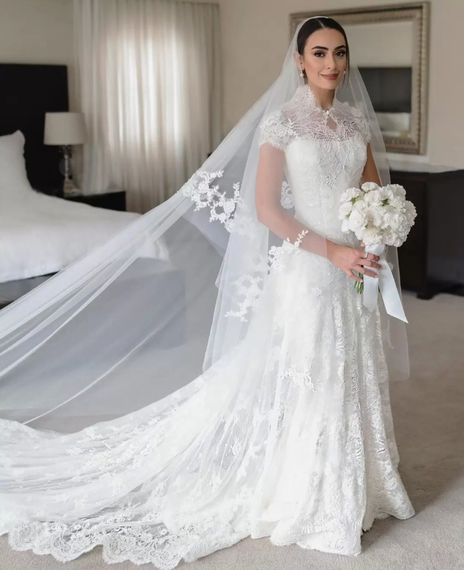 Lace Appliques Mermaid Wedding Dress High Neck Cape Short Sleeve Bridal Gown