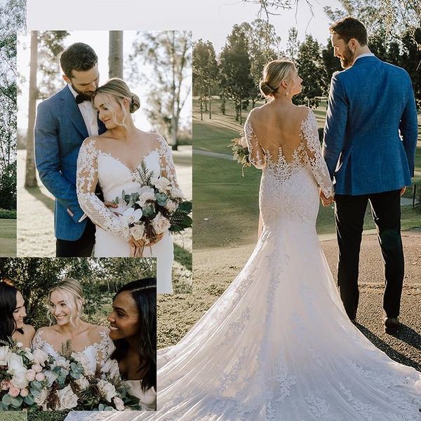 Elegant Mermaid Long Sleeves Lace Wedding Dress