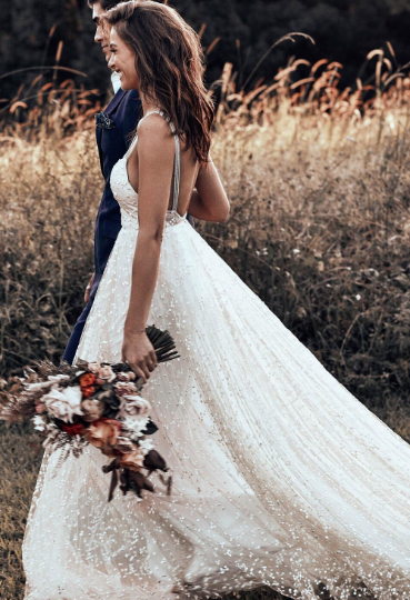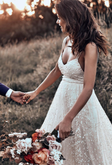 Boho Wedding Dress Classic Handmade Unique wedding Dresses Breathtaking Dot Tulle V-neck bodice Bridal Dress