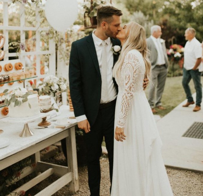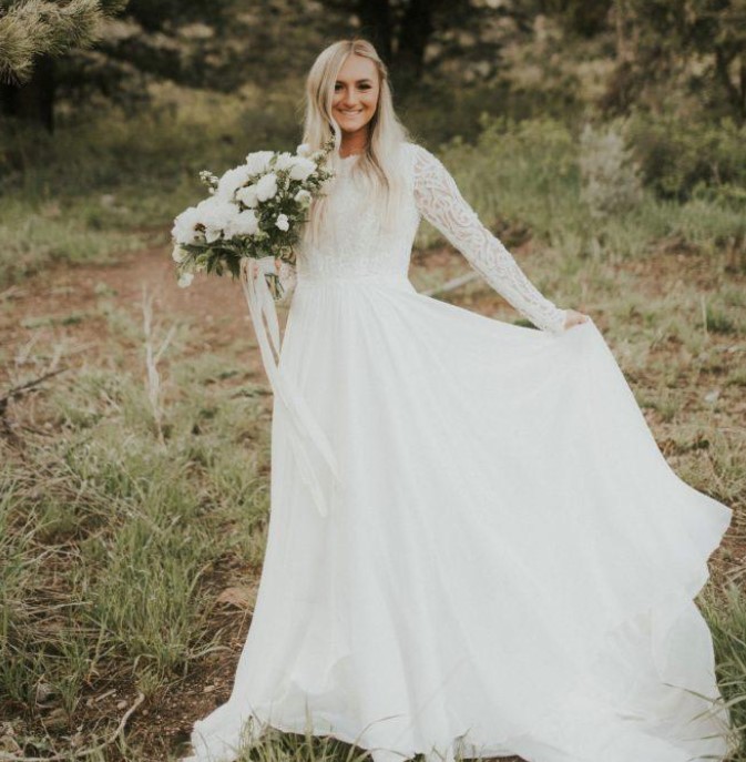 A-line Modest Wedding Dresses With long Sleeves jewel Neck Lace chiffon Bridal Gowns