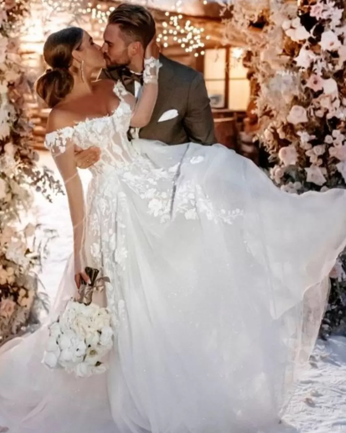 Gorgeous Lace White Dubai Arabic Wedding Dresses Elegant Off Shoulder Sheer Long Sleeve Appliques Ruched Long Bridal Gowns