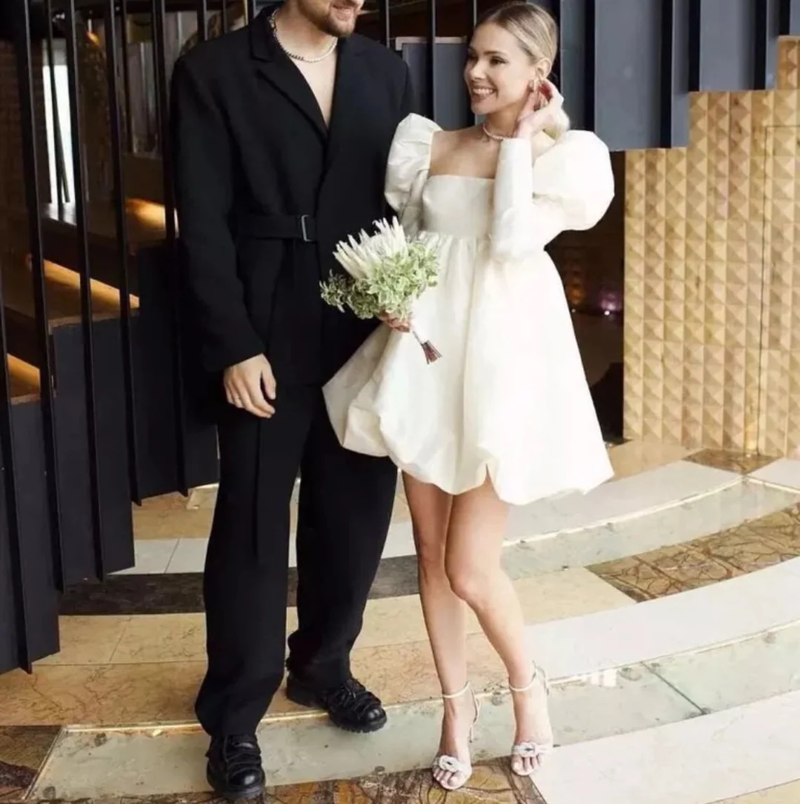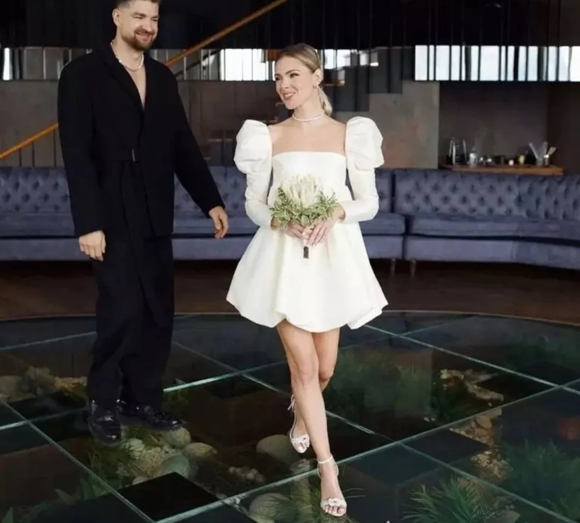 Square Collar Wedding Dress Mini Above Knee Lantern Sleeves Short Sexy Backless Wedding Dress