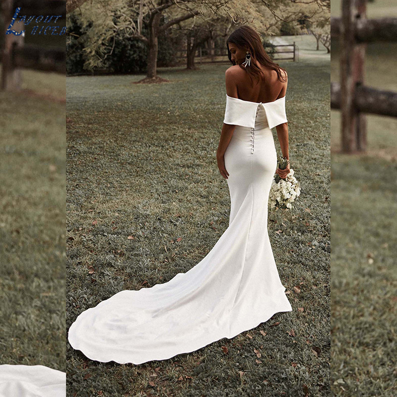 Simple Off the Shoulder Wedding Dress Soft Satin Boat Neck Mermaid Bride Gowns