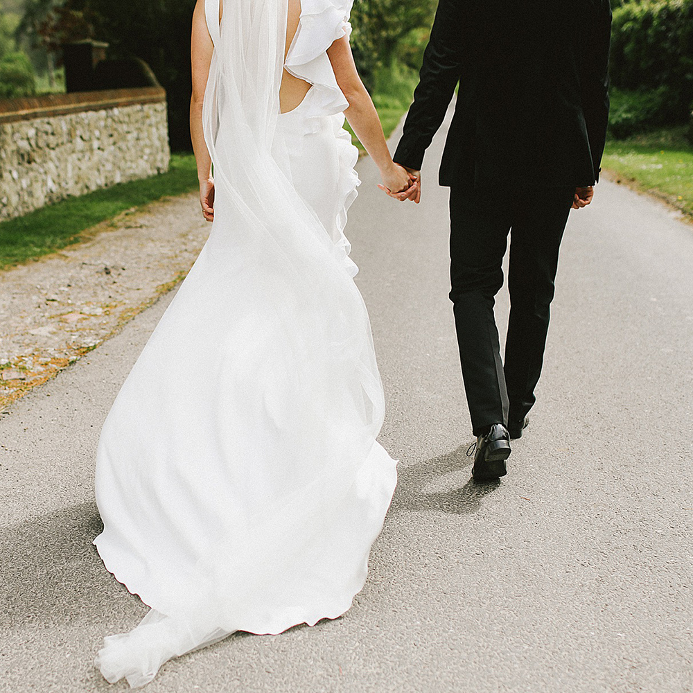 Sheath Chiffon Low Split Wedding Dress Simple Backless Open Back Ruffled Scoop Neck Minimalist Ivory Bridal Gowns