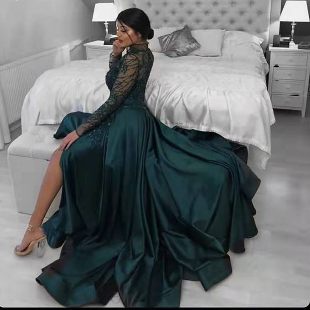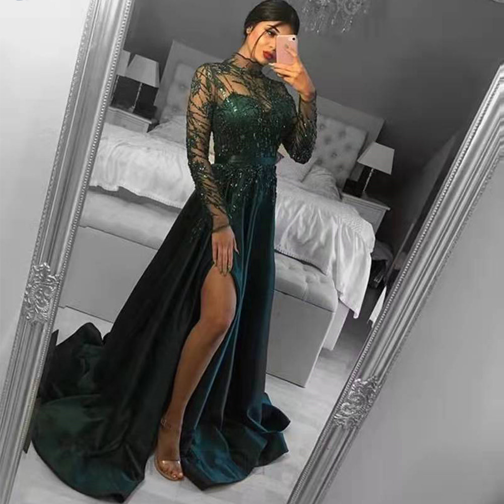 Dark Green A-Line Evening Dresses Women Full Sleeves See Throgh Prom Dress