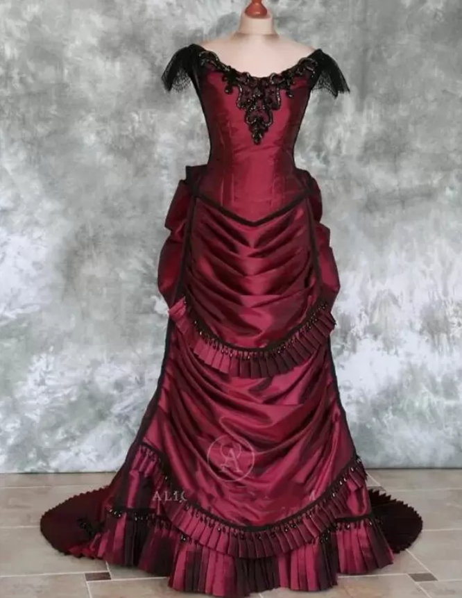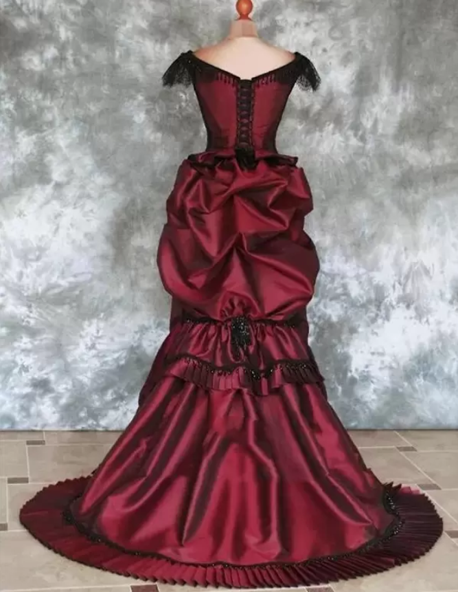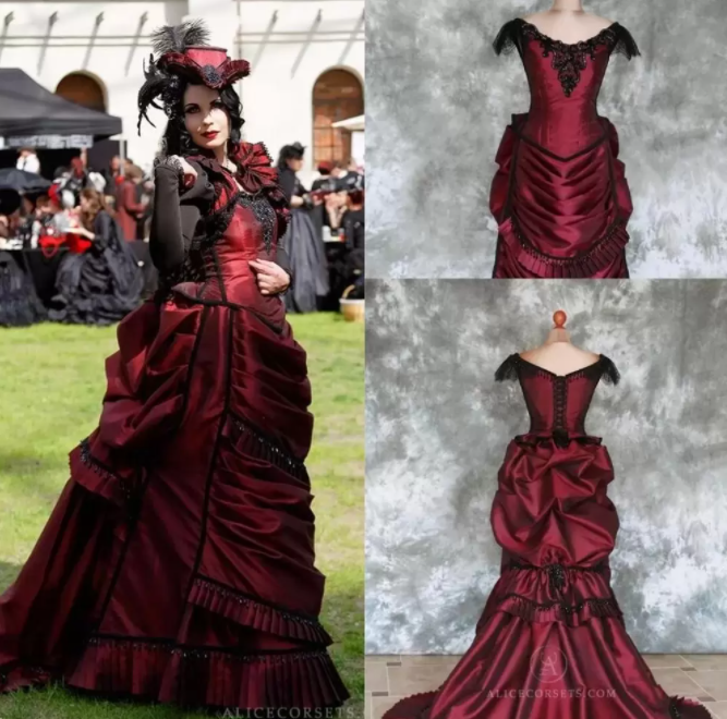 Burgundy Goth Victorian Bustle wedding dresses Vintage Beaded Lace-up Back Corset Top Gothic Outdoor Bride Wedding Gown