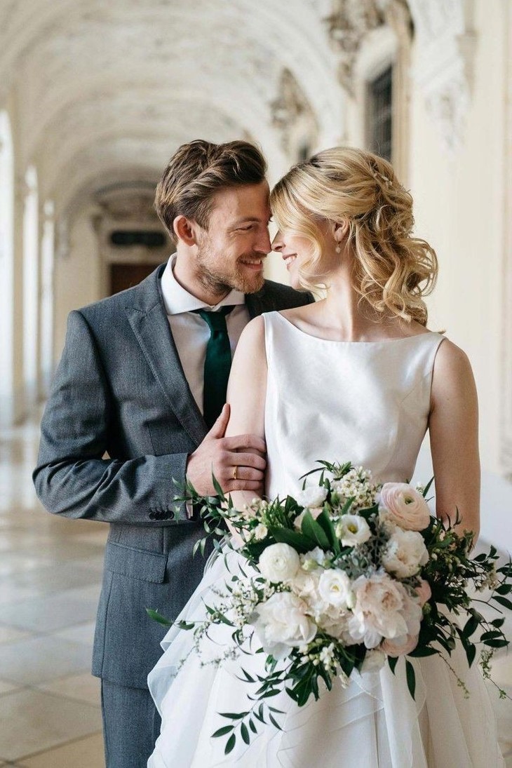 Gorgeous A-Line Satin Ivory Tulle Wedding Dresses